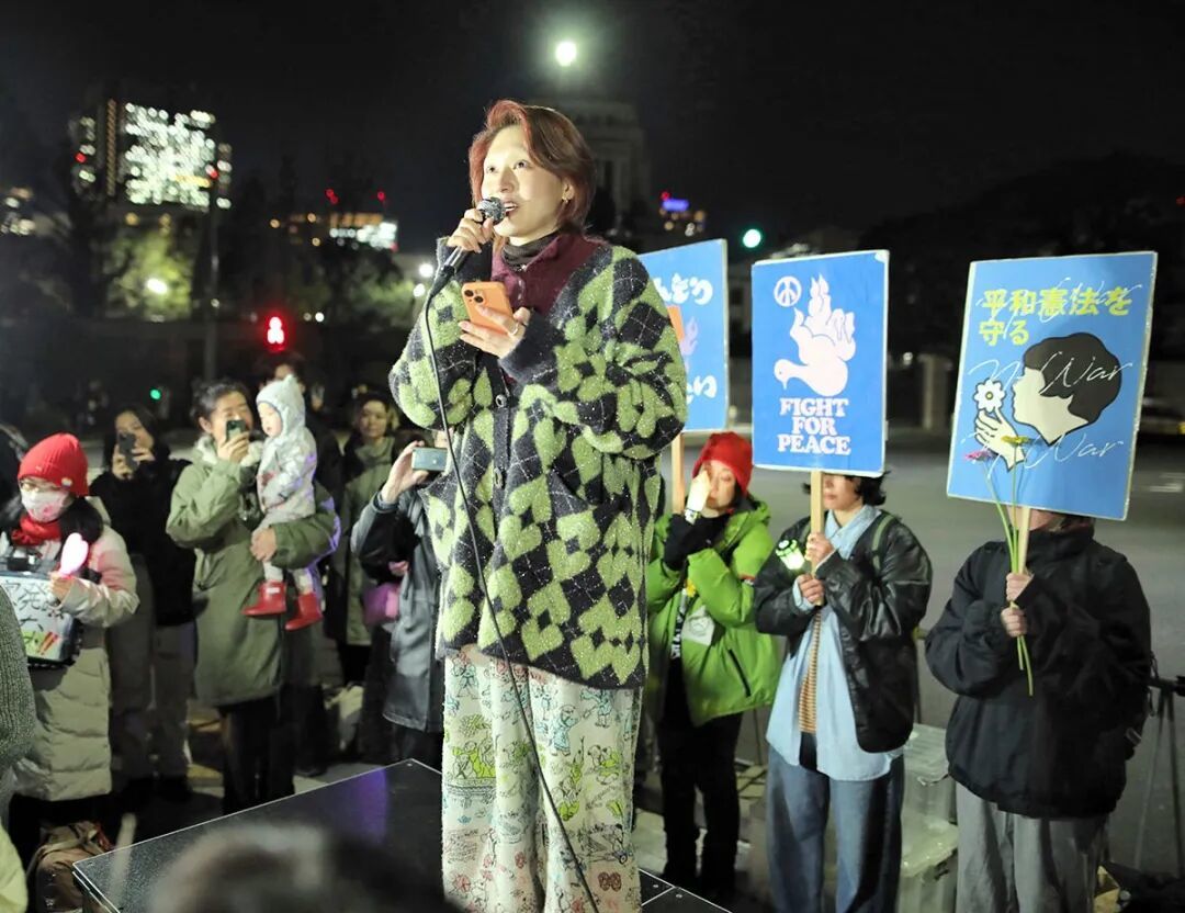 音乐家舆美咲带着家人站在抗议队伍前说:“日本是唯一遭受过原子弹轰炸的国家,正因如此,我们现在更有责任向世界传递无核、和平的信息。不管社会舆论如何变化,真正强大的永远是每一个人的意志。让我们把这场反战运动继续下去!”