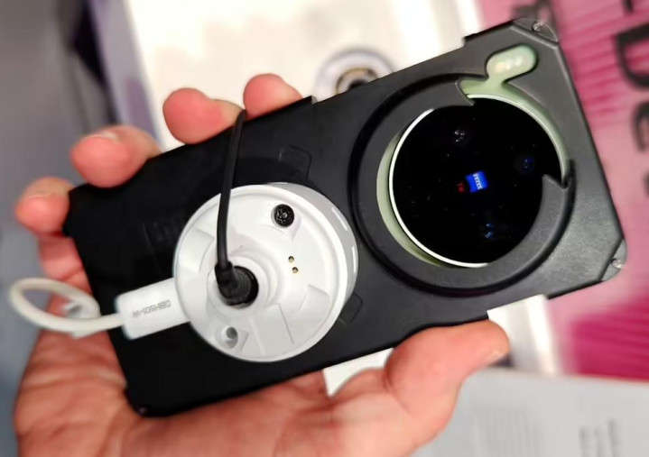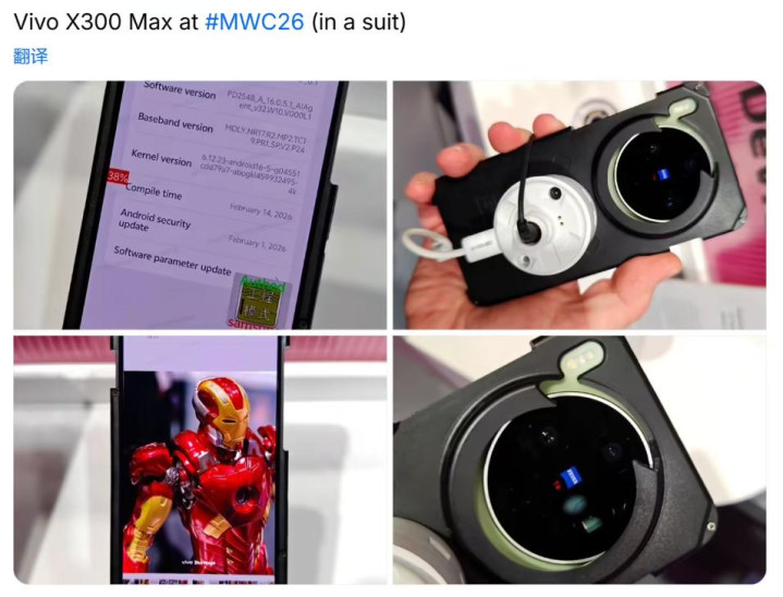 据IT之家消息透露,外网曝光了vivo x300 max手机的外观,采用圆形相机模组,两颗镜头安置在蔡司T*品牌标志的两侧,第三颗镜头在这两颗镜头的上方。