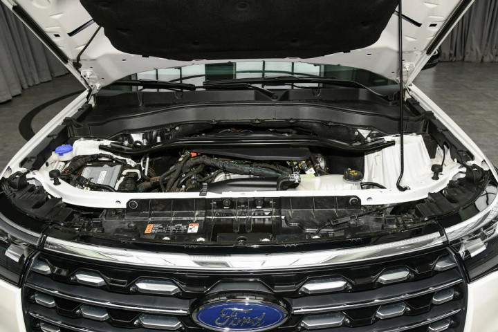 2025款福特探险者全系搭载2.3T EcoBoost L4涡轮增压发动机,排量2261mL,采用纵置布局,最大马力289Ps,最大功率213kW,最大净功率211kW,最大扭矩445N·m,最大扭矩转速区间2500-4500rpm,最大功率转速5500rpm,匹配10挡自动/10挡手自一体变速箱,两种版本在动力参数上保持一致,只是变速箱形式略有不同。从数据上看,这套动力总成的账面表现比较扎实,2.3T的排量对于一台中大型SUV来说不算激进,但289匹的马力带动2054kg(穿越版)/2103kg(昆仑版)的车身,日常驾驶不会觉得吃力,低扭输出在2500转左右就能爆发,城市里起步、超车都比较从容,高速巡航时再加速也有一定底气。WLTC综合油耗方面,穿越版为9.57L/100km,昆仑版为10.6L/100km,考虑到车重和排量,这个油耗水平在同级中属于比较合理的范围,没有明显的“喝油”负担。